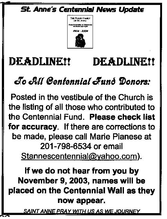 Schedule of Masses Week of November 10th- 16th, 2003 |