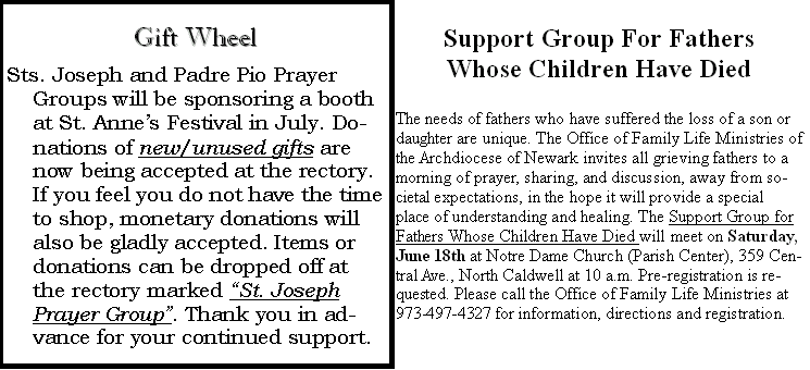 of Masses Week of June 6th - June 12th, 2005 |